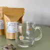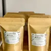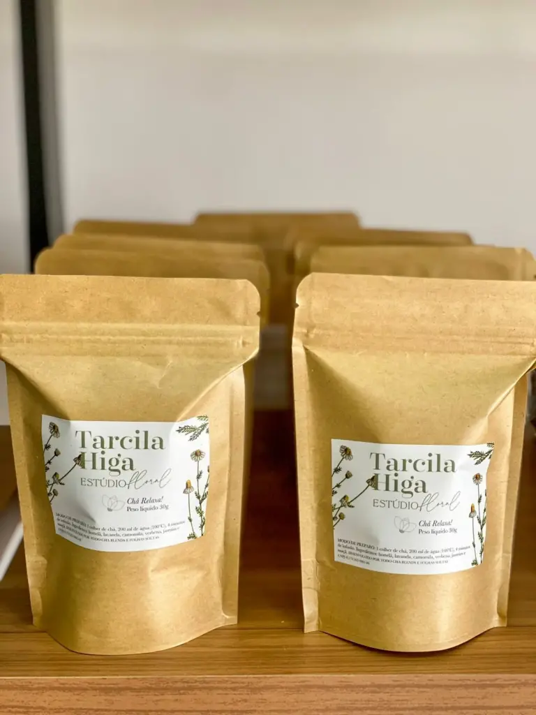 O nosso chá é uma receita desenvolvida para nós e sua composição leva: hortelã, lavanda, camomila, verbena, jasmim e maçã.