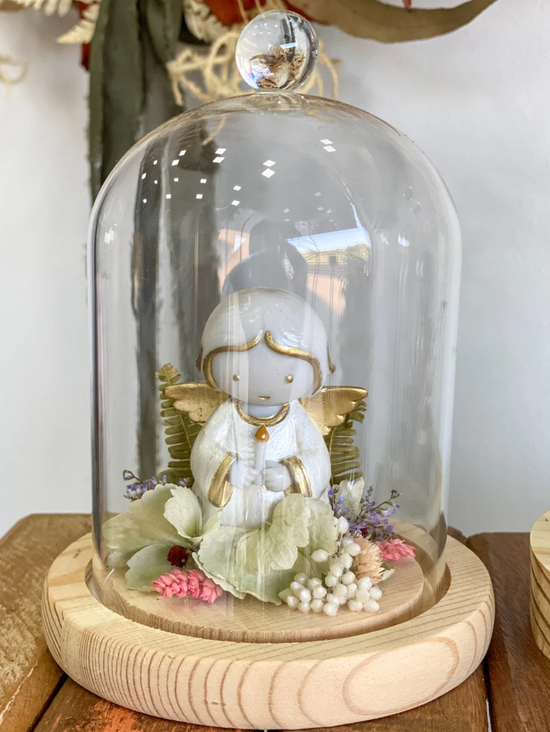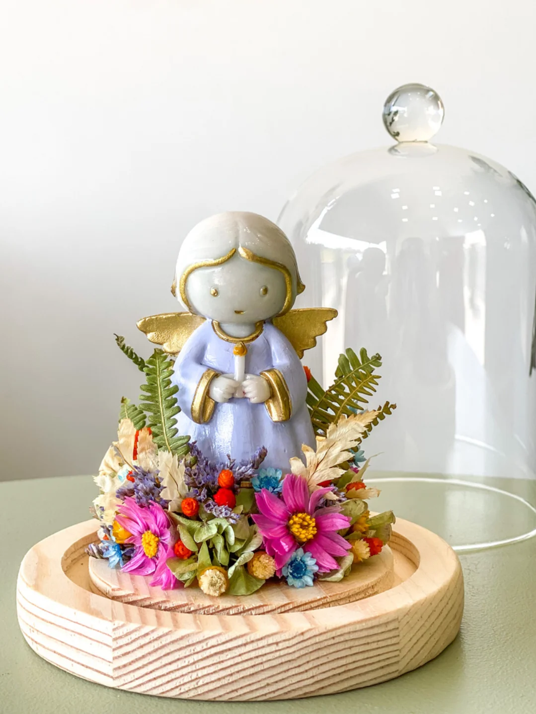 Este trabalho é desenvolvido com flores e folhagens naturais desidratadas que passaram por um longo processo totalmente artesanal de secagem.