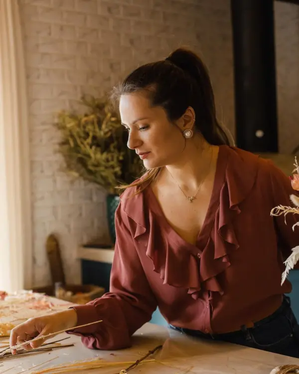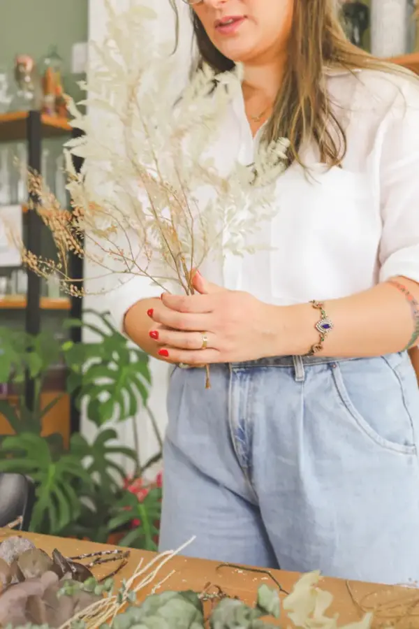 Trabalhei em casa por um tempinho, até que, no natal de 2022 tive uma procura tão grande que senti a necessidade de ir para um espaço maior, onde eu pudesse me dedicar mais e ampliar a produção e atendimento. Assim, em fevereiro de 2023 assinei o contrato de aluguel da sala onde seria o estúdio! Fizemos uma pequena reforma no espaço, fizemos a mudança e organizamos tudo para que, no dia primeiro de maio fizéssemos a inauguração do nosso cantinho tão amado e especial, onde recebemos nossos clientes com conforto, alegria e cafezinho! Pouco tempo depois, analisando nossas demandas, decidimos parar com a produção de arranjos com flores frescas e nos especializamos em flores desidratadas e nos tornamos o primeiro estúdio floral da cidade de São José do Rio Preto e região!
