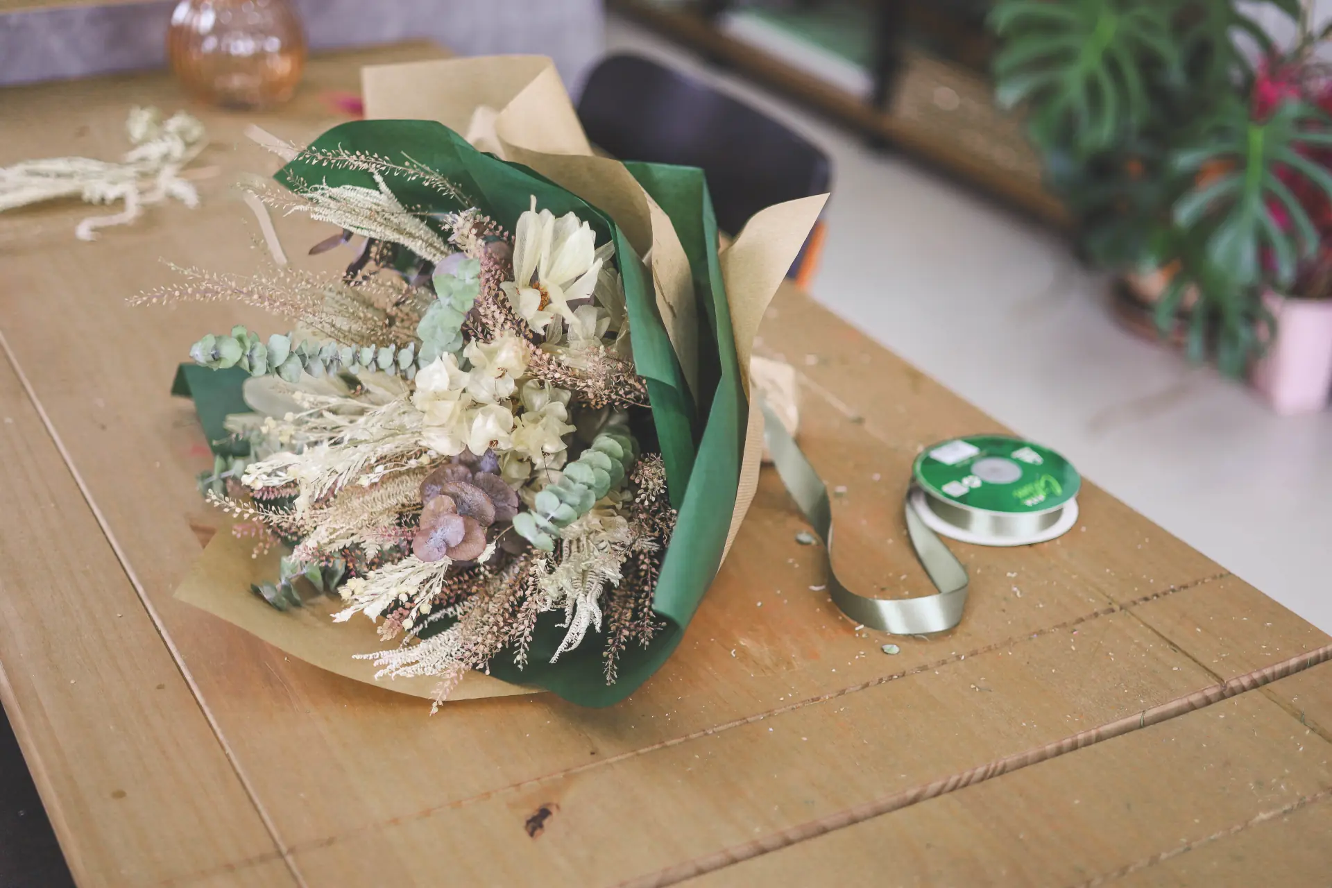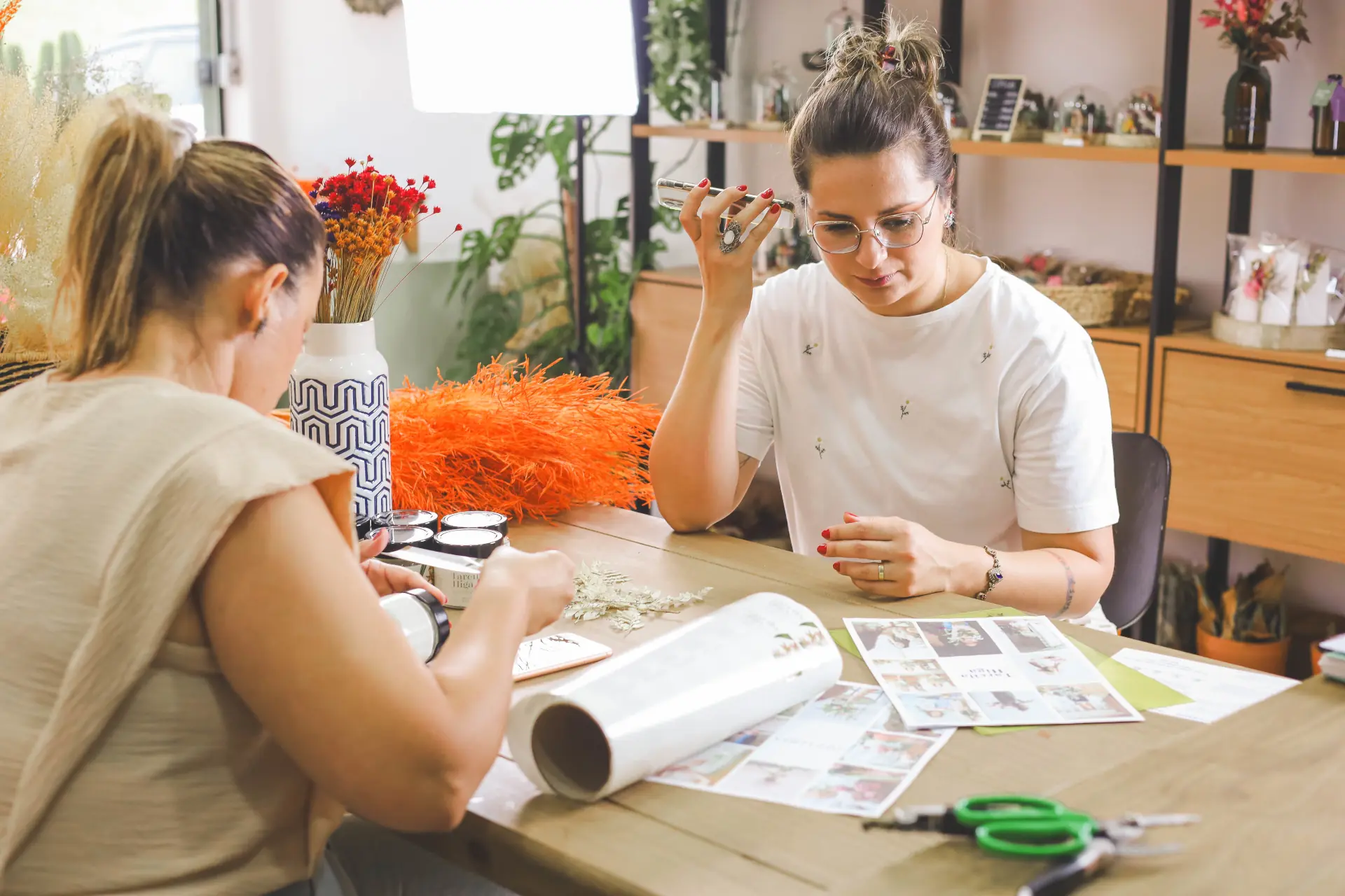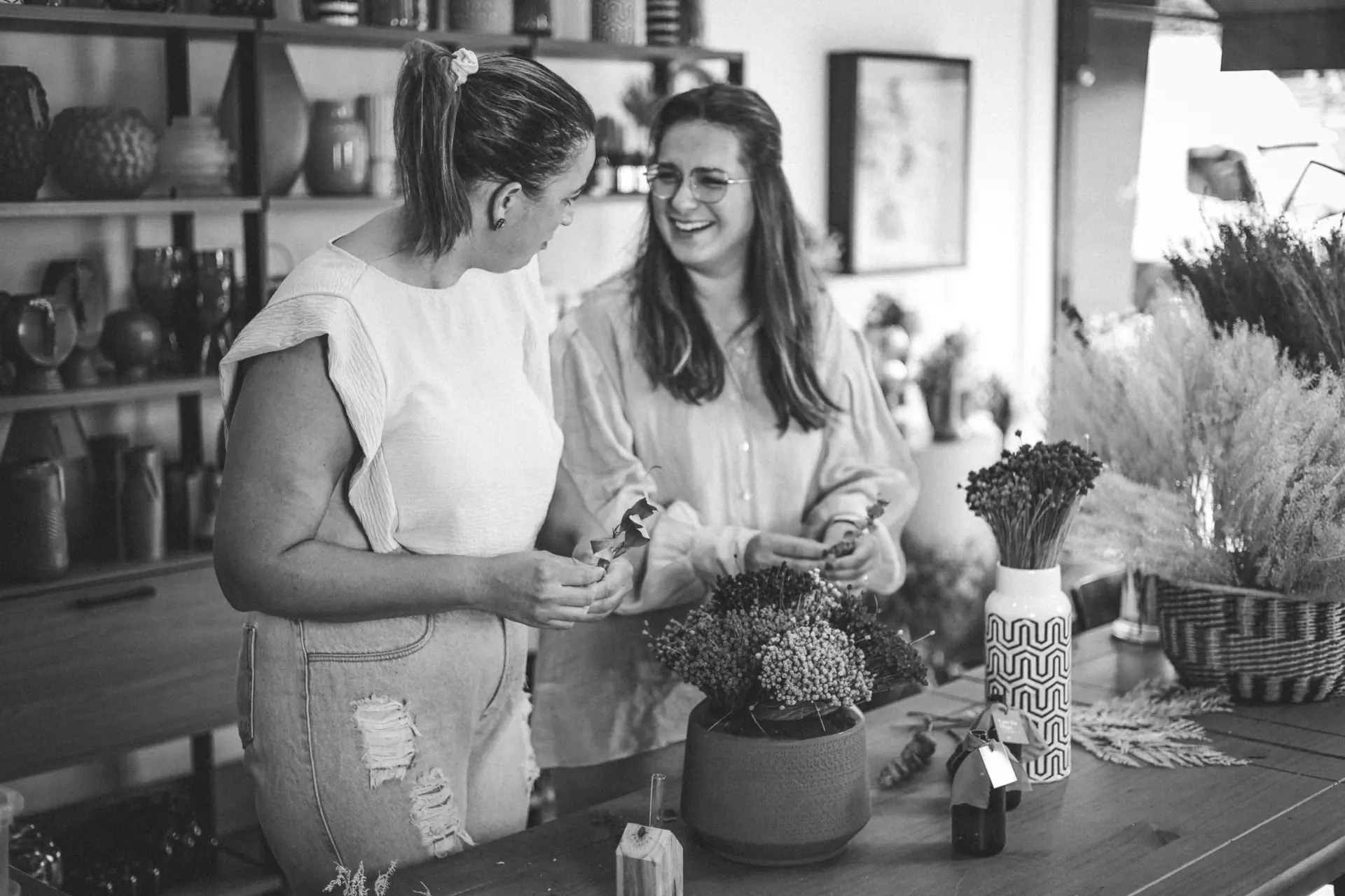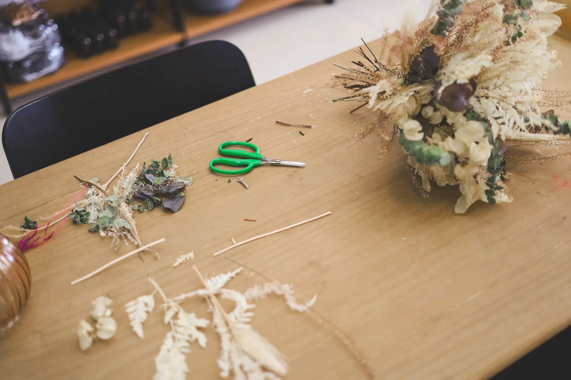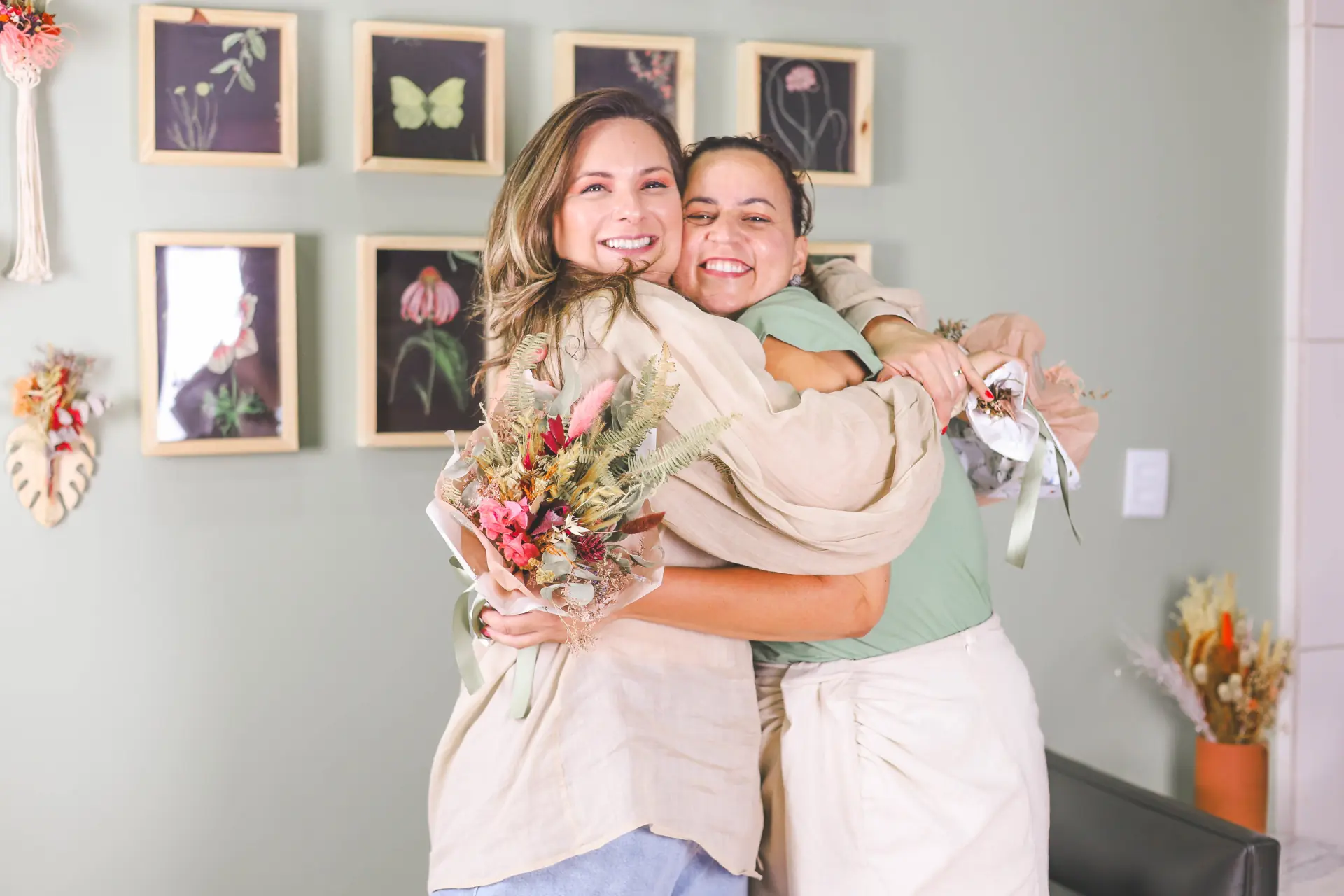 Trabalhei em casa por um tempinho, até que, no natal de 2022 tive uma procura tão grande que senti a necessidade de ir para um espaço maior, onde eu pudesse me dedicar mais e ampliar a produção e atendimento. Assim, em fevereiro de 2023 assinei o contrato de aluguel da sala onde seria o estúdio! Fizemos uma pequena reforma no espaço, fizemos a mudança e organizamos tudo para que, no dia primeiro de maio fizéssemos a inauguração do nosso cantinho tão amado e especial, onde recebemos nossos clientes com conforto, alegria e cafezinho! Pouco tempo depois, analisando nossas demandas, decidimos parar com a produção de arranjos com flores frescas e nos especializamos em flores desidratadas e nos tornamos o primeiro estúdio floral da cidade de São José do Rio Preto e região!